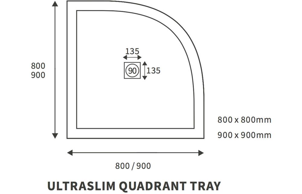 Poseidon 25mm Ultra-Slim 900mm x 900mm Quadrant Tray & Waste