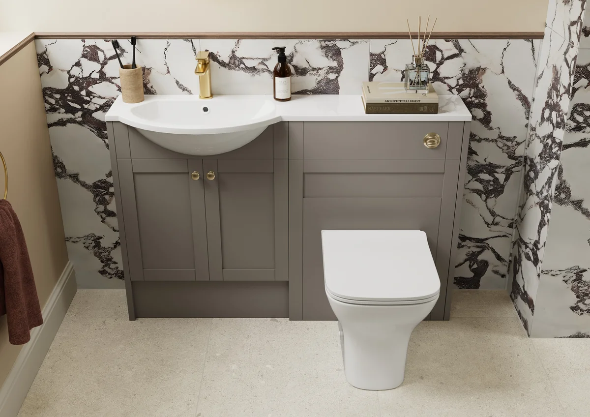 Novello Avelis 1536mm Standard Basin, Wc & 1 Door Unit Pack - Matt Stone (Oak Cab)