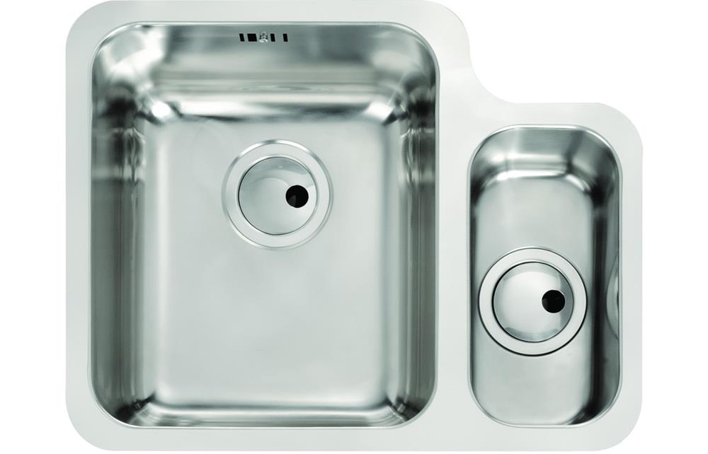 An Abode Matrix 1.5 bowl undermount sink in Stainless Steel • Please select main bowl handing above • Dimensions: W 572 x D 450 x H 205mm