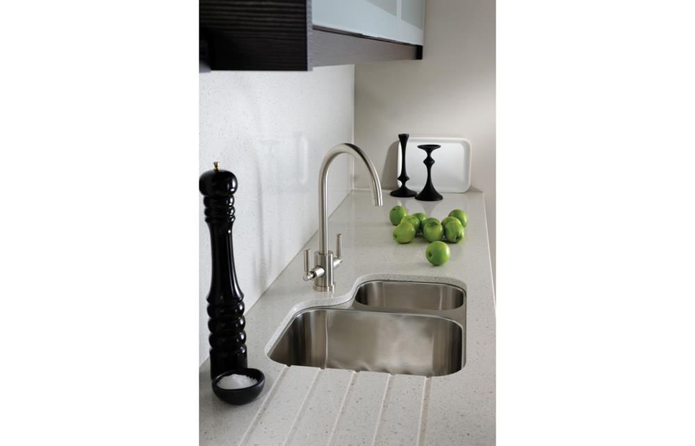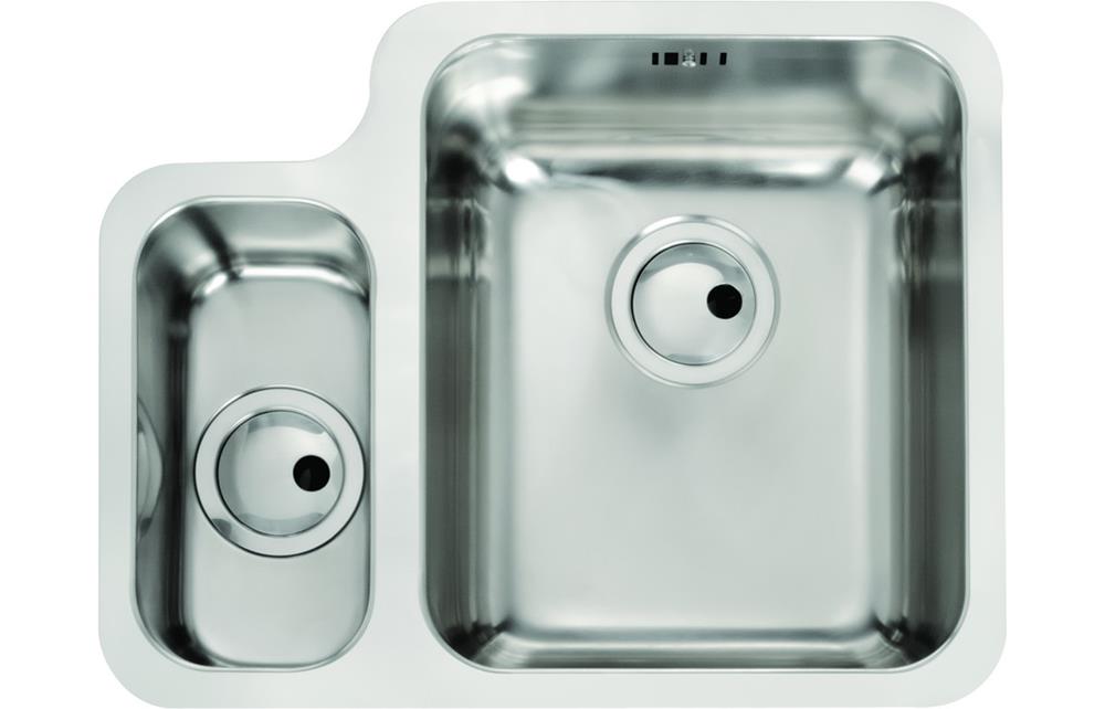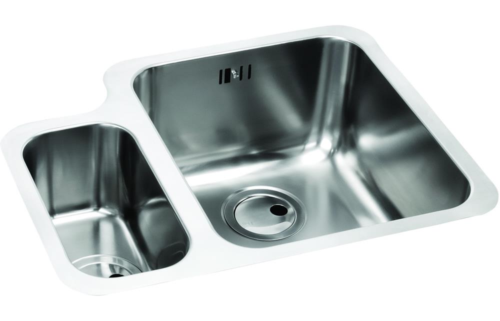 An Abode Matrix R50 1.5 bowl undermount sink in Stainless Steel • Right handed main bowl • Dimensions: W 572 x D 450 x H 205mm