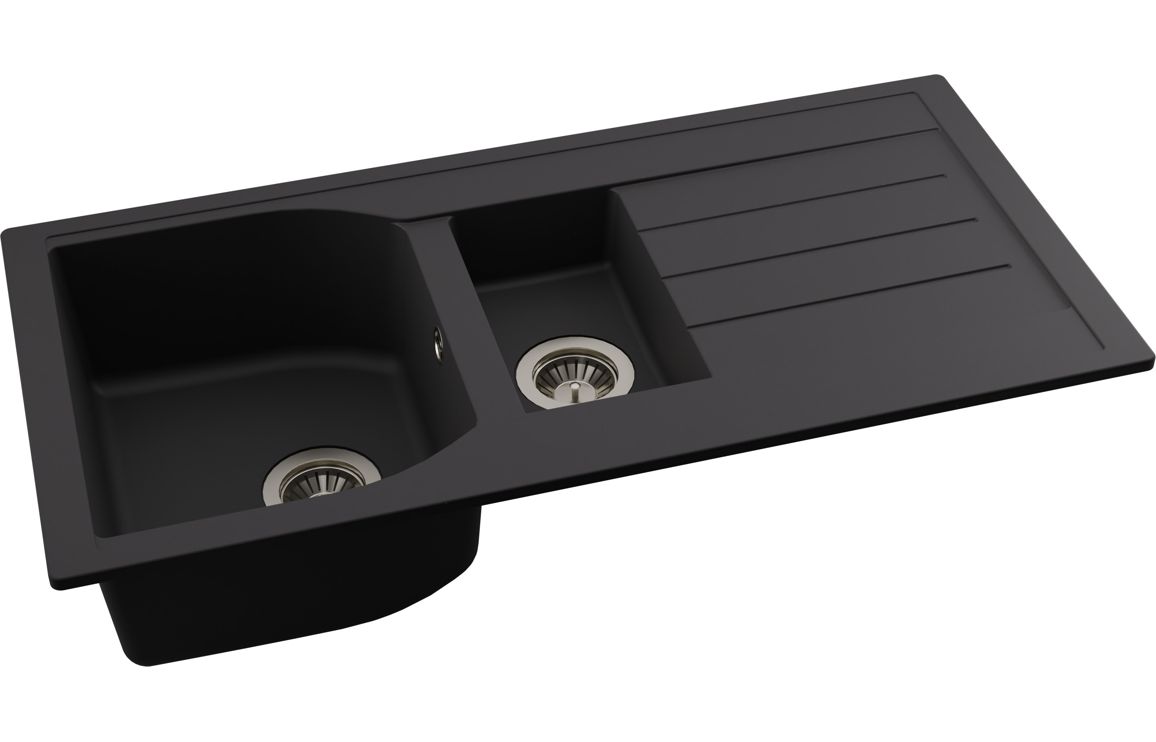 An Abode Oriel 1.5 bowl inset sink in Black Metallic • Reversible Sink • Dimensions: W 950 x D 480 x H 200mm