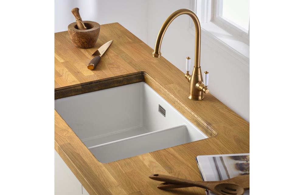 - An Abode Sandon 1.5 bowl inset/undermount sink in White