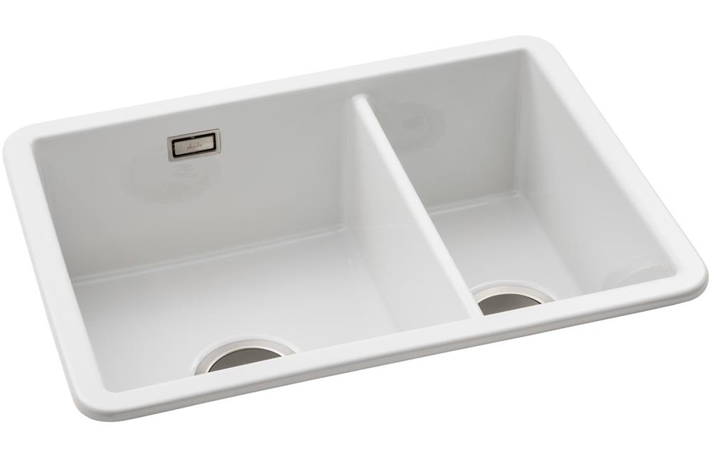 An Abode Sandon 1.5 bowl inset/undermount sink in White • Left handed main bowl • Dimensions: W 595 x D 460 x H 220mm