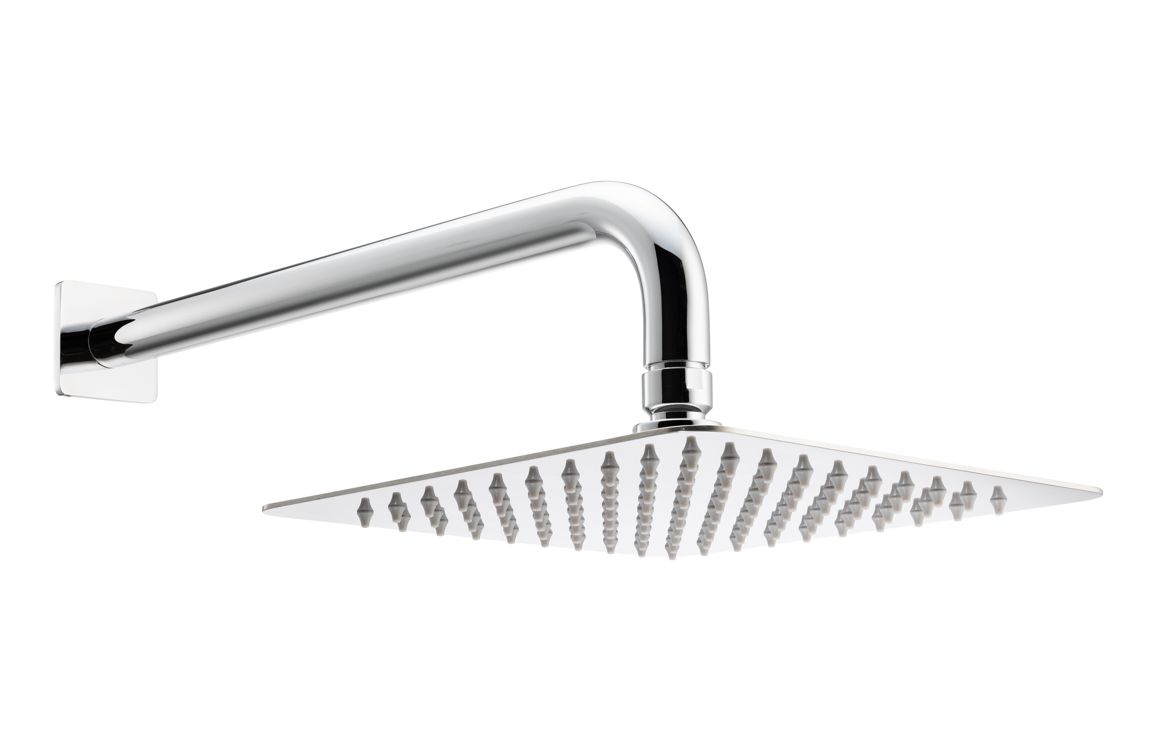 Soft square design to complement many Abode Brasware ranges • Use with UNO Shower Arm • Dimensions: H 43 x W 200 x D 200mm