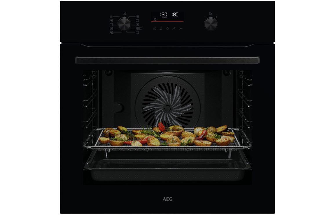 • A built in AEG single electric oven in black