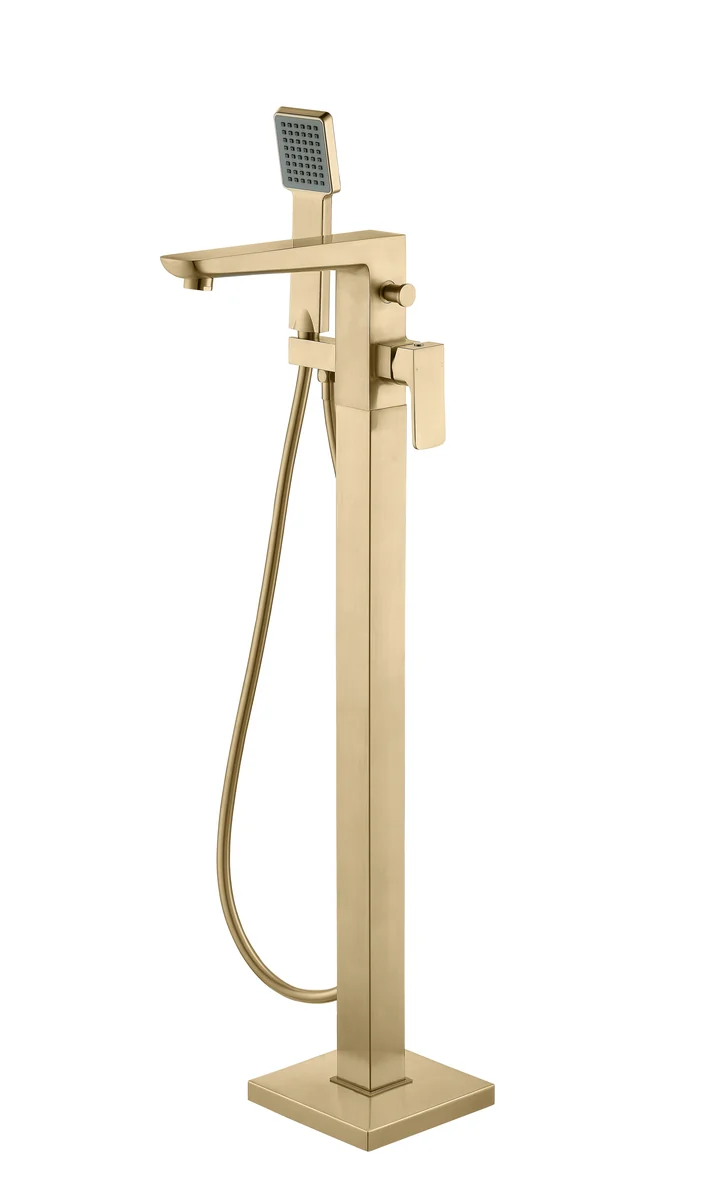 - High Pressure Floor Standing Brushed Brass Bath Shower Mixer