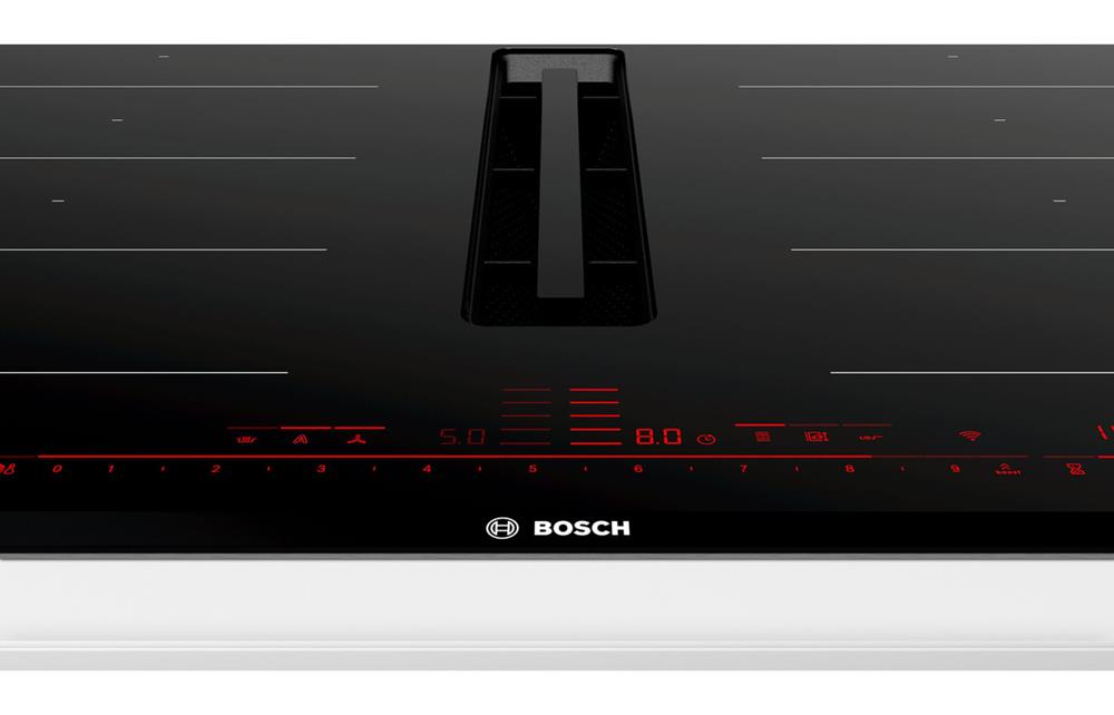 A Built In Bosch Venting Induction Hob in Black • Number of Cooking Zones – 4 • Dimensions: H 223 x W 816 x D 527mm
