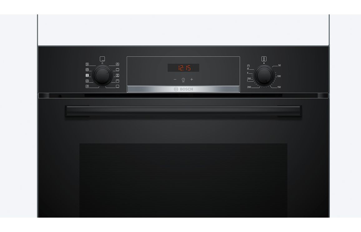 A built in Bosch single electric oven in black • 71 litre capacity • Dimensions: H 595 x W 594 x D 548mm