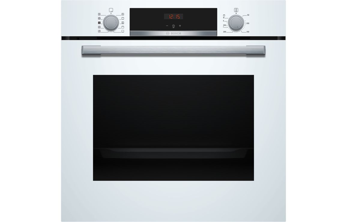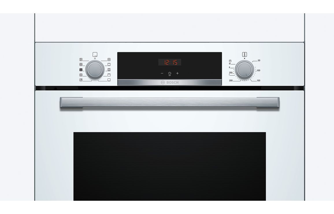 A built in Bosch single electric oven in white • 71 litre capacity • Dimensions: H 595 x W 594 x D 548mm