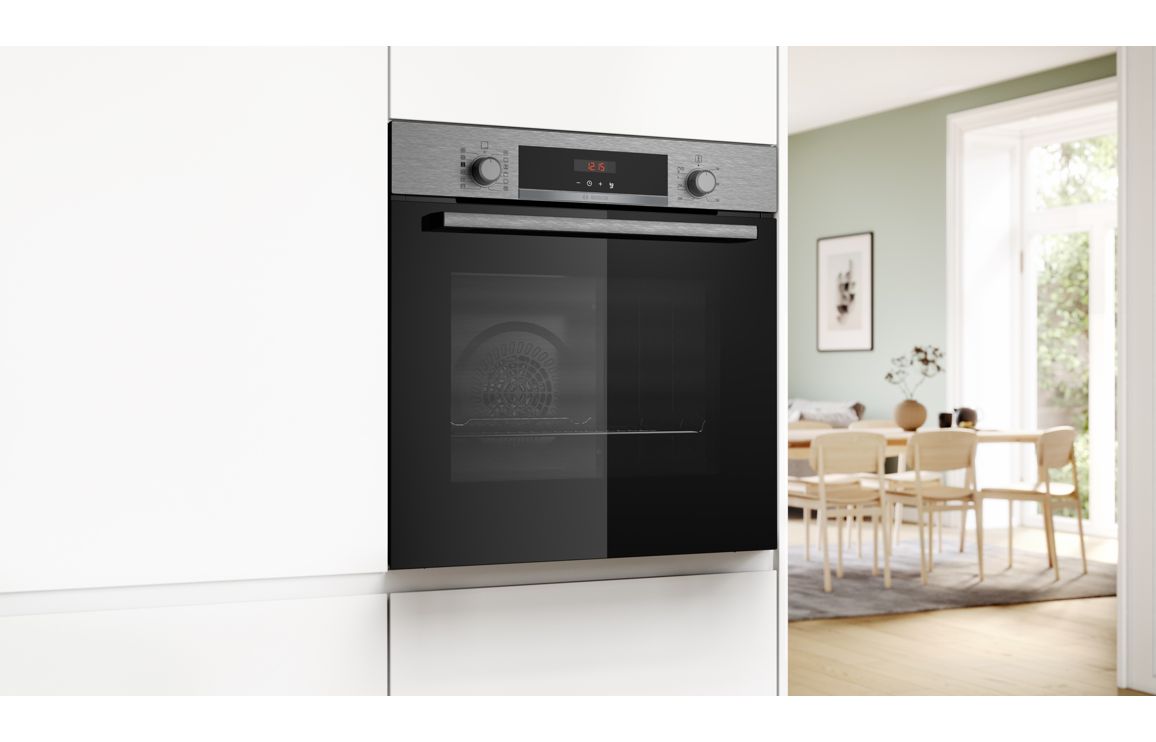 - A built in Bosch single electric oven in black & stainless steel