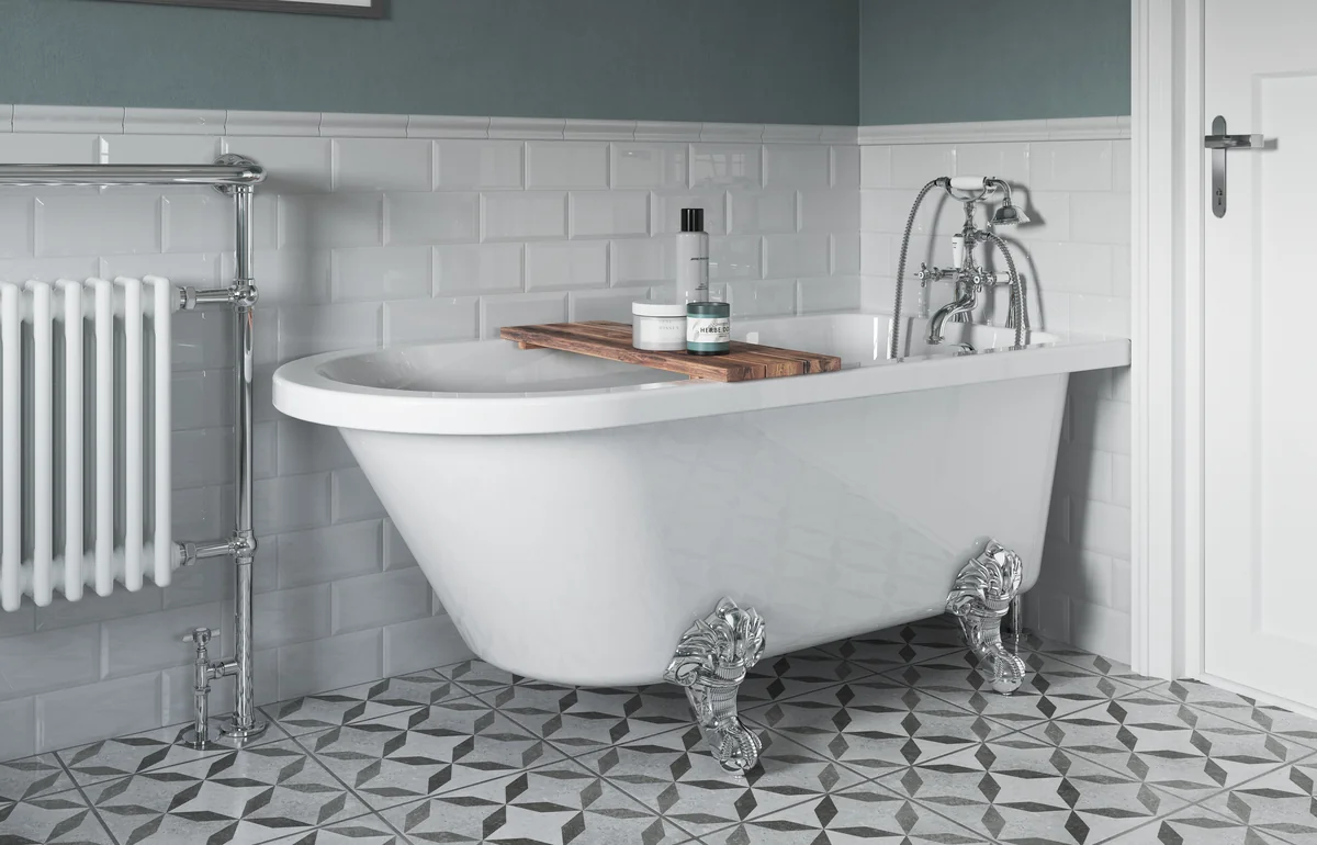 Single end classic freestanding bath • Comes with chrome ‘ravenclaw’ design bath feet • Dimensions: L 1500 x W 750 x H 650mm