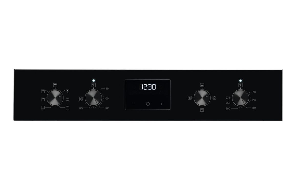 A built in Electrolux double electric oven in black • 66/42 litre capacity • Dimensions: H 888 x W 594 x D 568mm