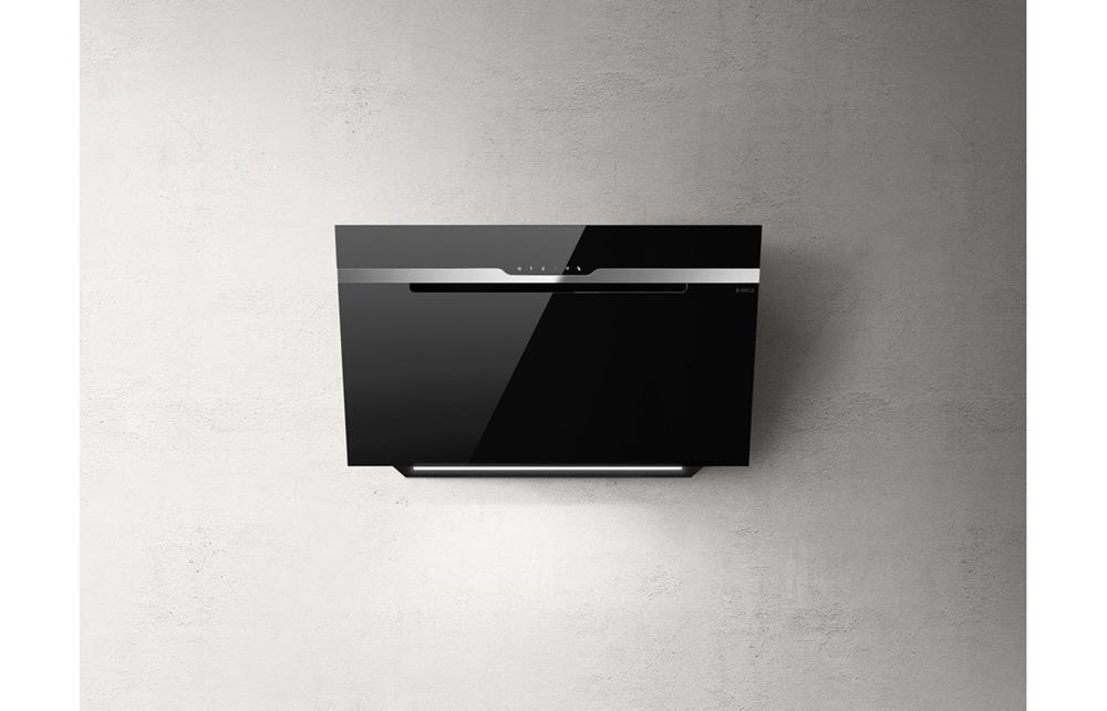 A Wall Mounted Elica Chimney Hood in Black • Maximum extraction: 485 m³/h • Dimensions: H 1045 – 1465 x W 898 x D 162mm