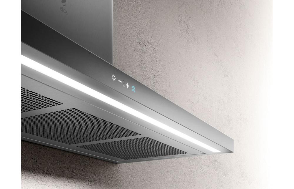 A Wall Mounted Elica Chimney Hood in Stainless Steel • Maximum extraction: 405 m³/h • Dimensions: H 623 x W 1198 x D 420mm