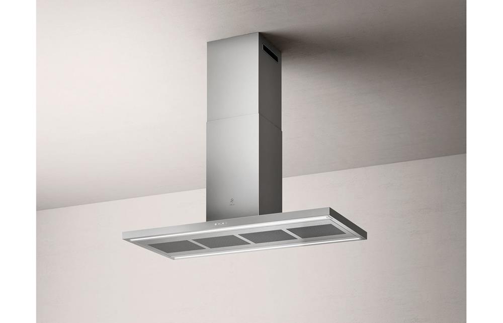 A Ceiling Fitted Elica Island Hood in Stainless Steel • Maximum extraction: 405 m³/h • Dimensions: H 765 – 1190 x W 1198 x D 570mm