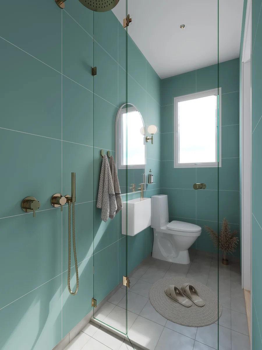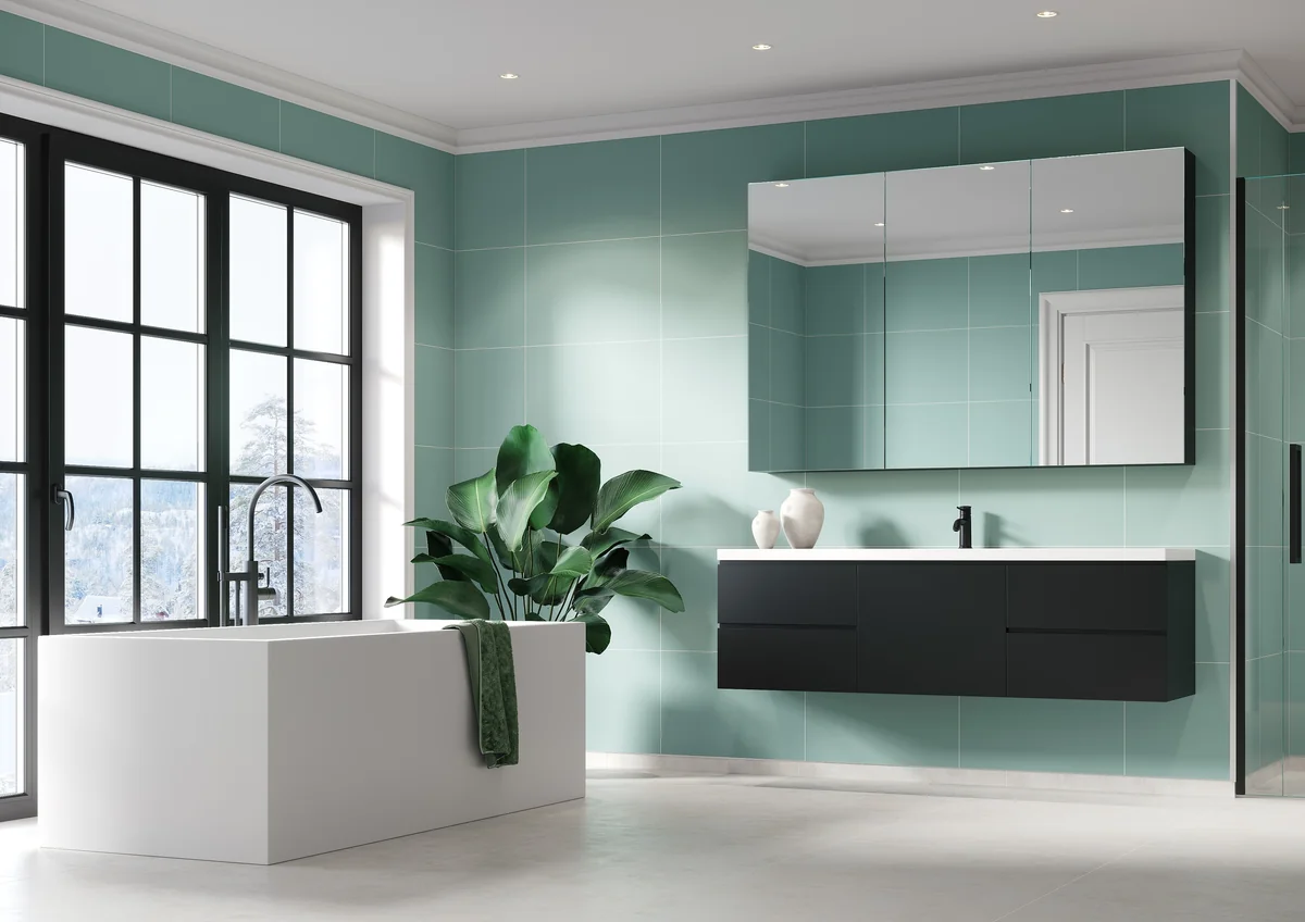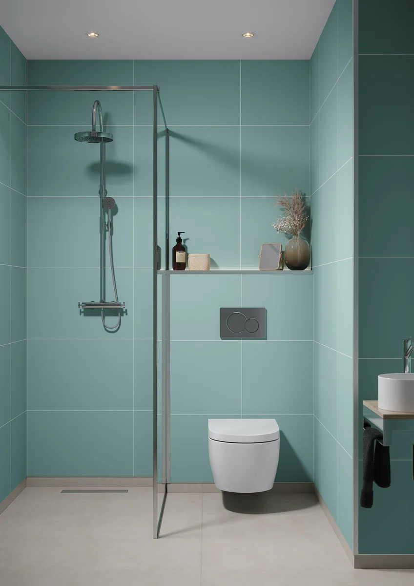 - This refreshing green colour with a hint of blue is perfect for creating a relaxing atmosphere in the bathroom.