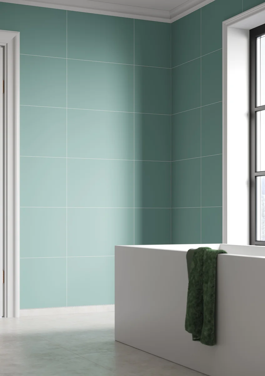 Save 7% when ordering a pack of two! If ordering three or more panels save by ordering in packs of two and just one single. • This refreshing green colour with a hint of blue is perfect for creating a relaxing atmosphere in the bathroom. • Dimensions: H 2400 x W 600 x D 10.2mm