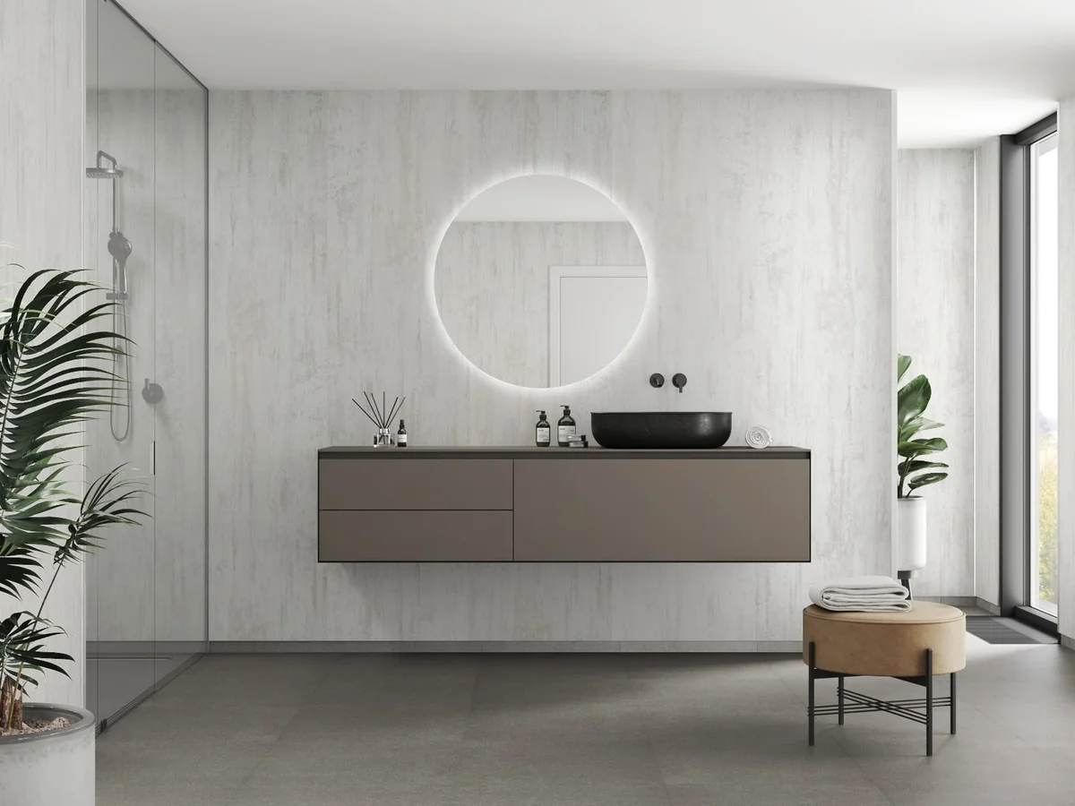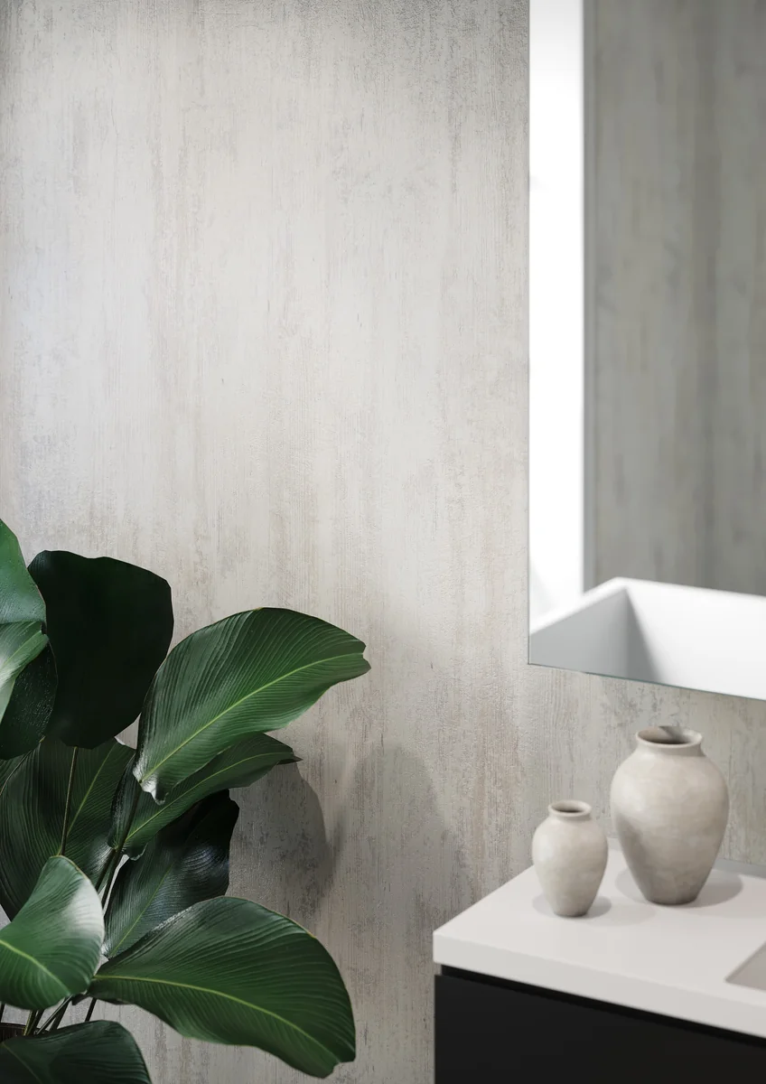 • That popular upcycle finish now available as a super stylish wall panel! This design looks great as a feature wall in combination with white satin panels – or when used for a whole room!