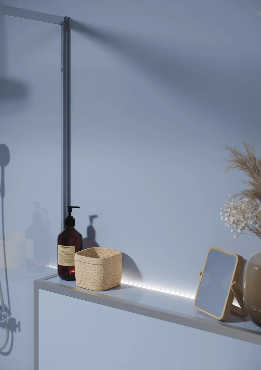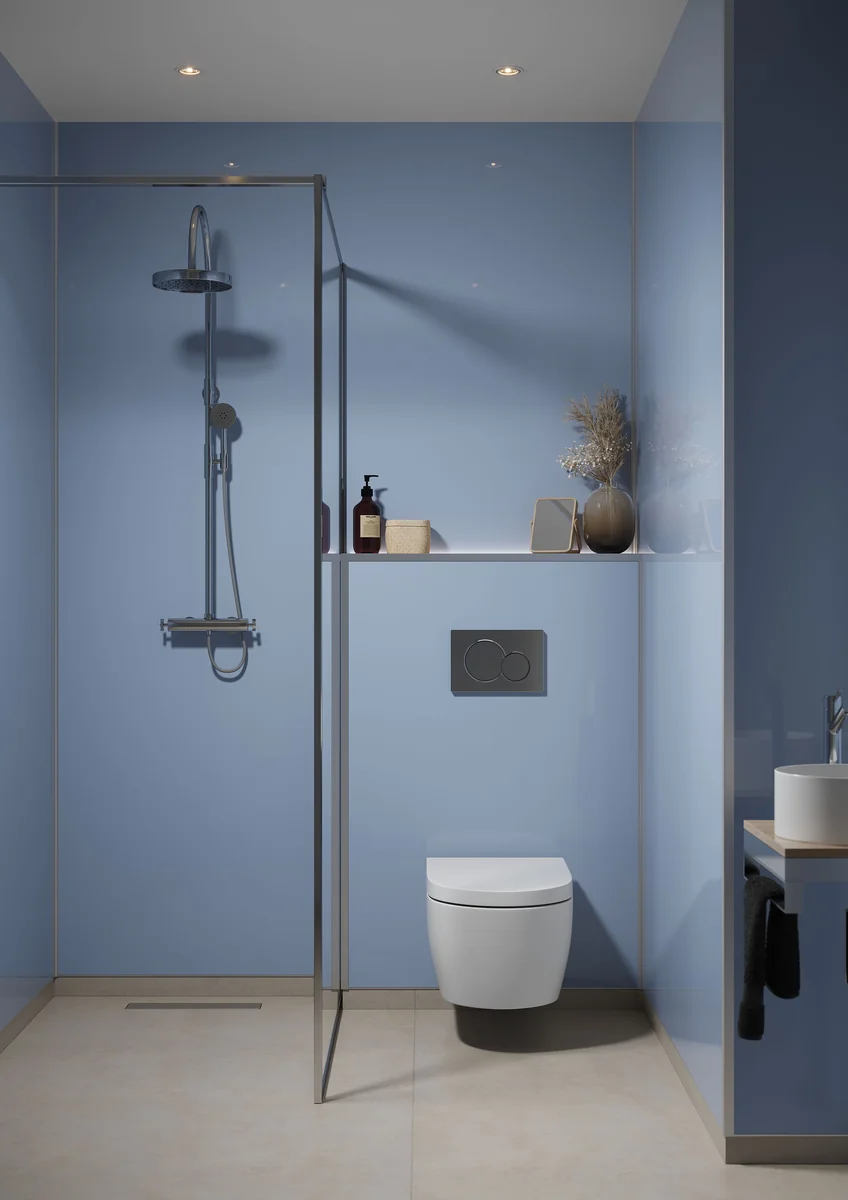Save 8% when ordering a pack of two! If ordering three or more panels save by ordering in packs of two and just one single. • Ice-clear light blue colour that gives a gentle tone to your bathroom. • Dimensions: H 2400 x W 600 x D 10.2mm