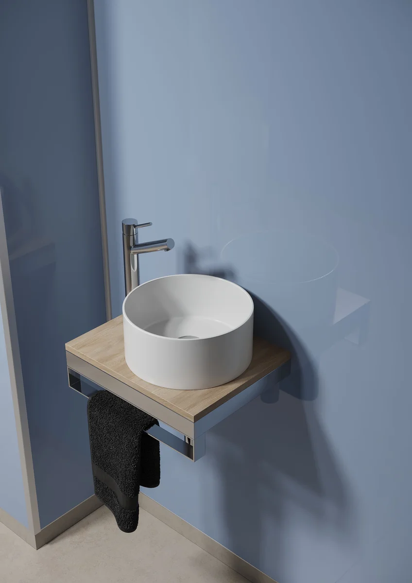 - Ice-clear light blue colour that gives a gentle tone to your bathroom.