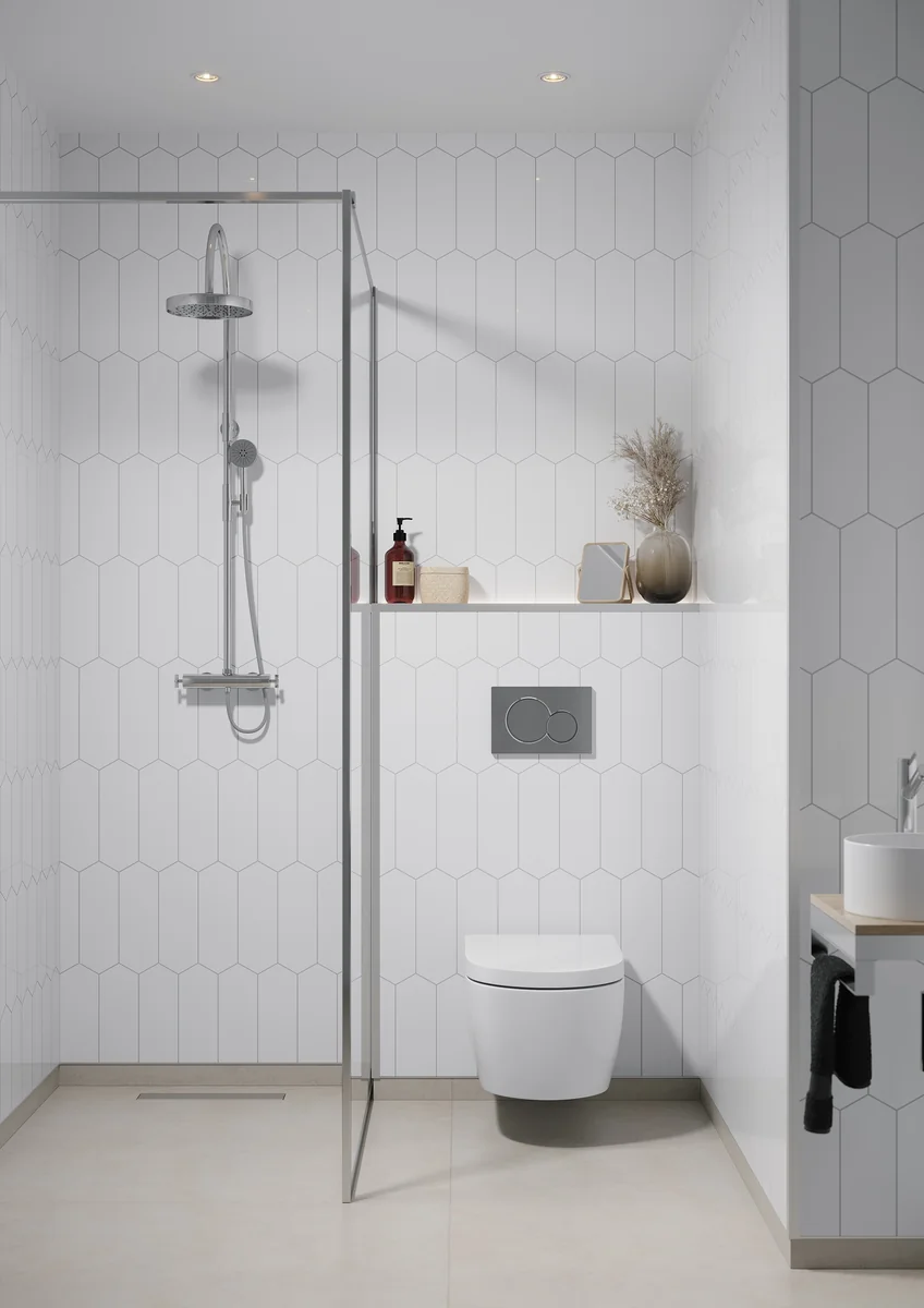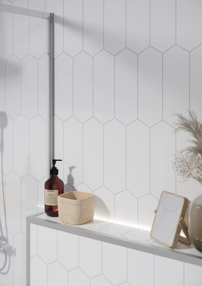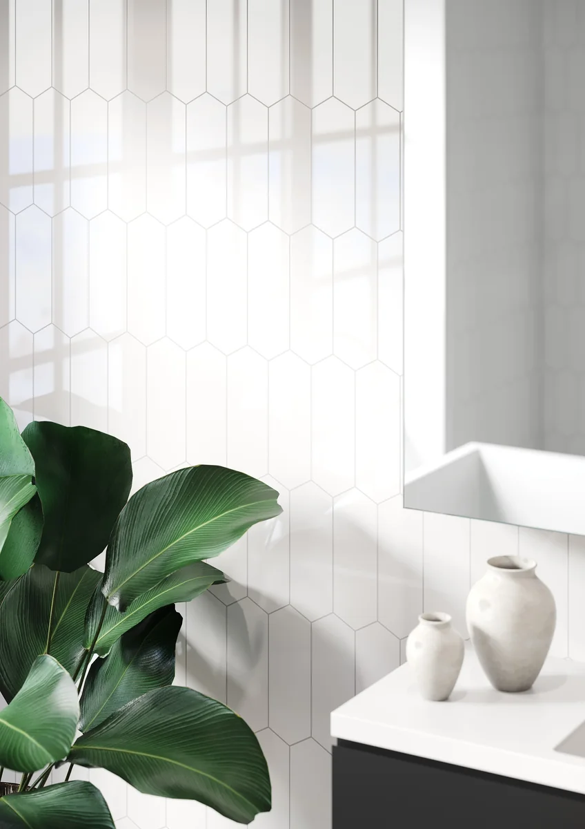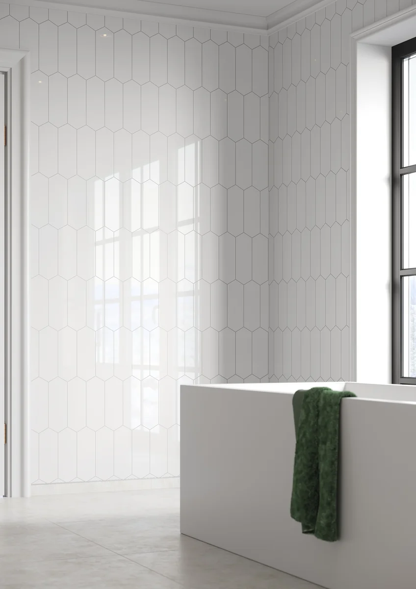 Save 8% when ordering a pack of two! If ordering three or more panels save by ordering in packs of two and just one single. • White goes with anything and Denver White is a high gloss best-seller! Now available in an Elongated Hexagon. • Dimensions: H 2400 x W 600 x D 10.2mm