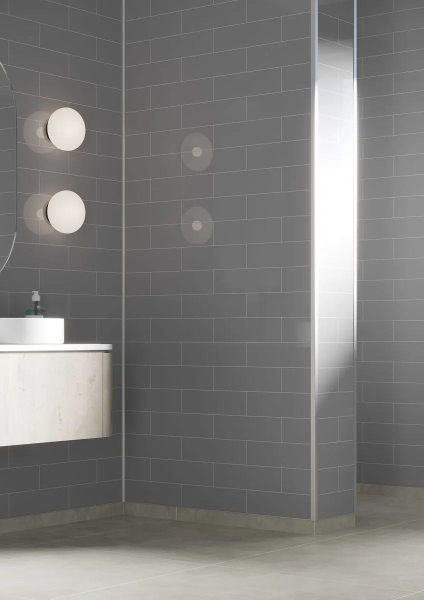 Save 8% when ordering a pack of two! If ordering three or more panels save by ordering in packs of two and just one single. • A lighter high gloss grey which works great both as a base colour in combination with other decors and on its own for a cool modern look. • Dimensions: H 2400 x W 600 x D 10.2mm