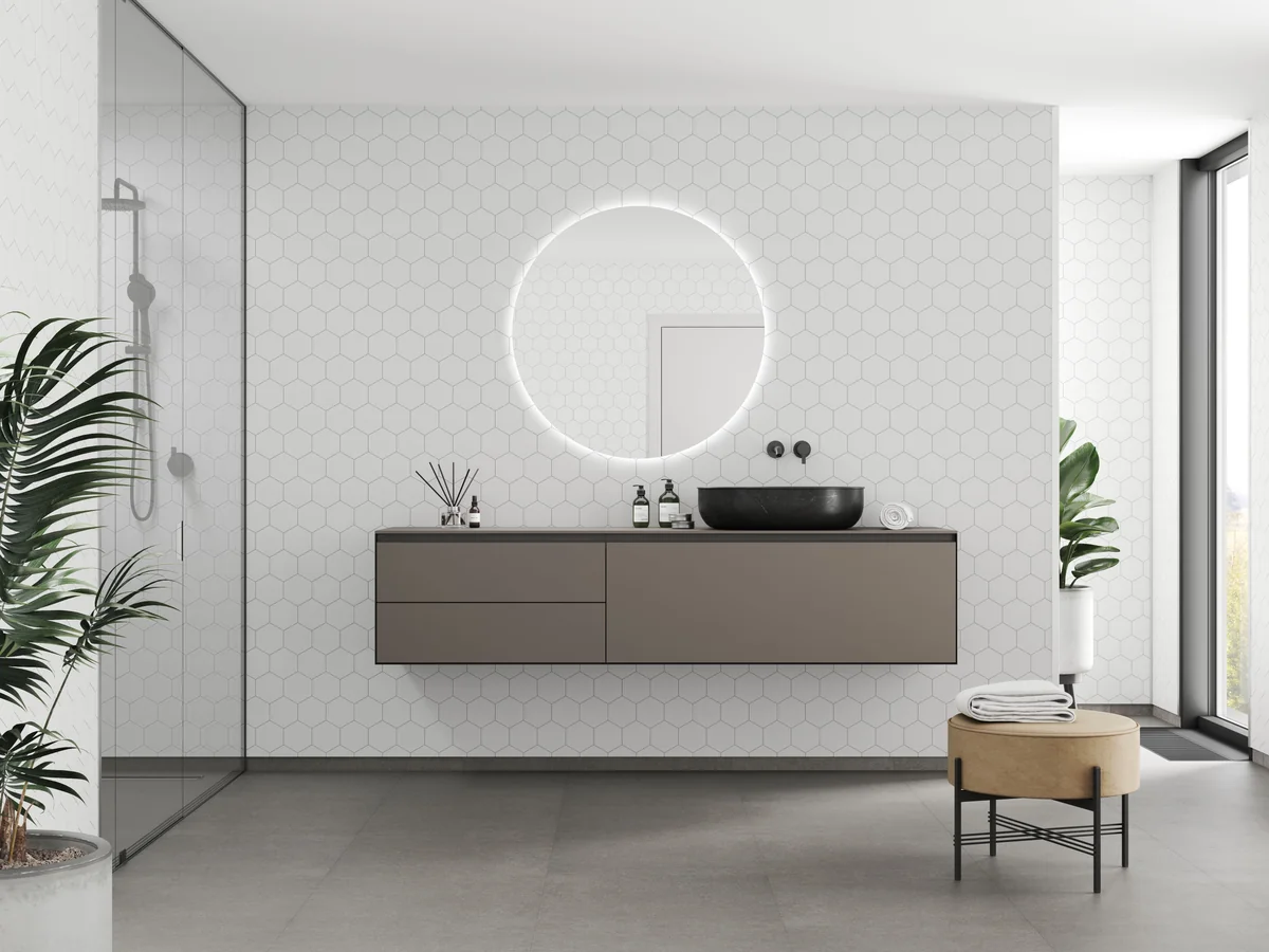 • White satin wall panels work well with absolutely everything! And now available in this super trendy hexagonal tile effect.