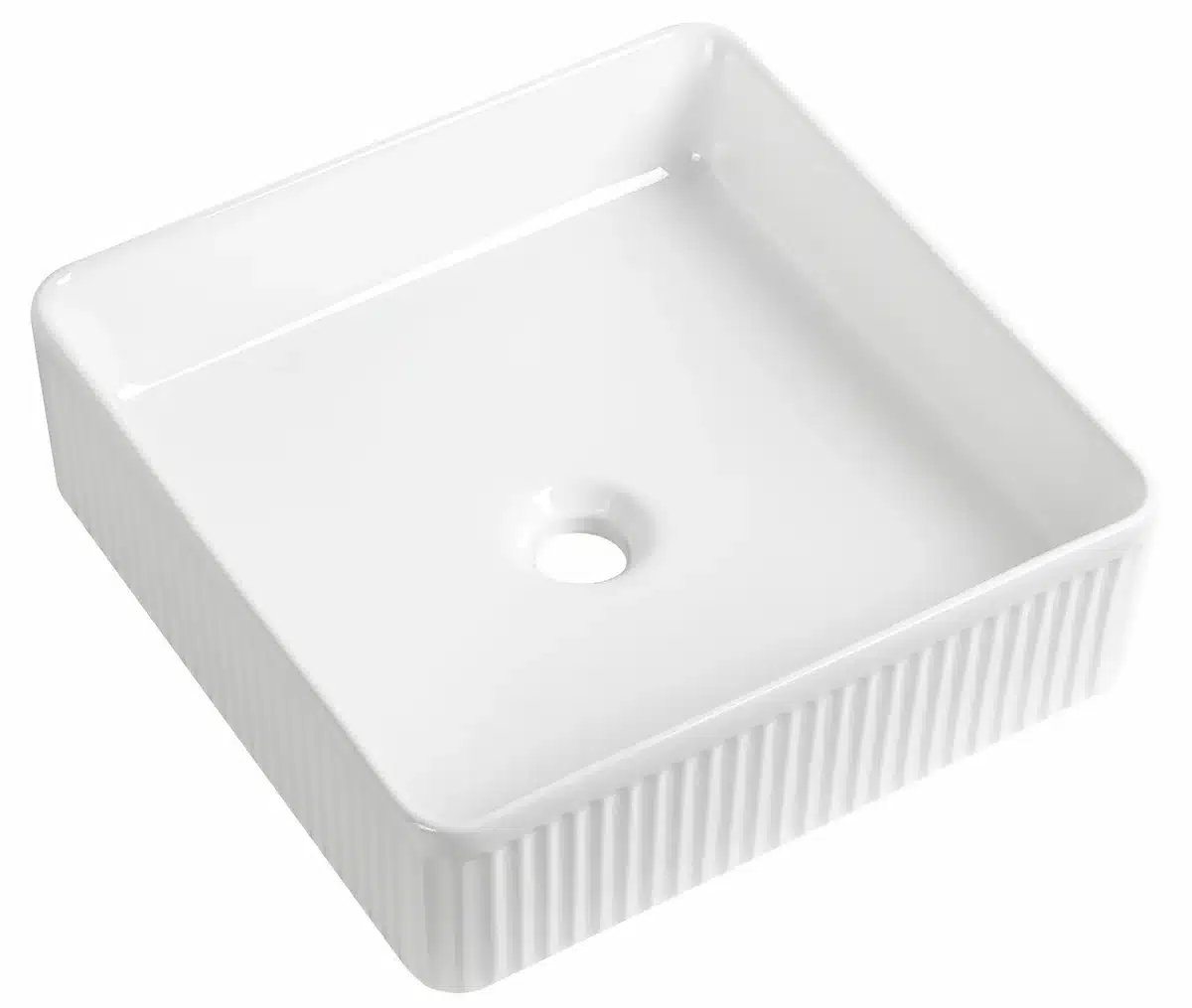 Flauto Fluted Square Countertop Basin – Gloss White – d400xw400mm