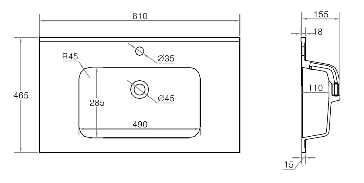 - Dimensions: 810mm wide x 465mm deep x 15mm high