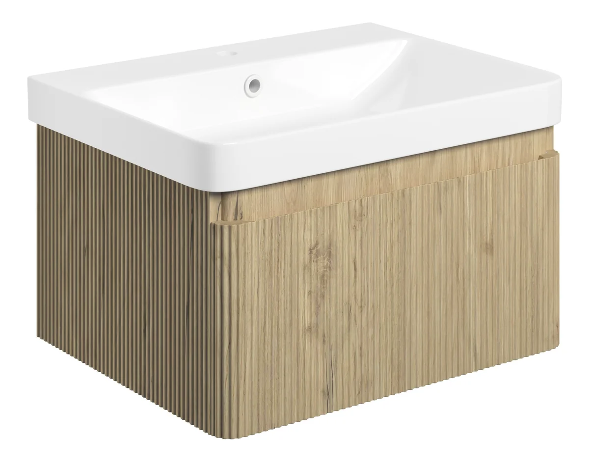 Novello Kenvra 605mm Wall Hung 1 Drawer Basin Unit & Basin – Textured Oak