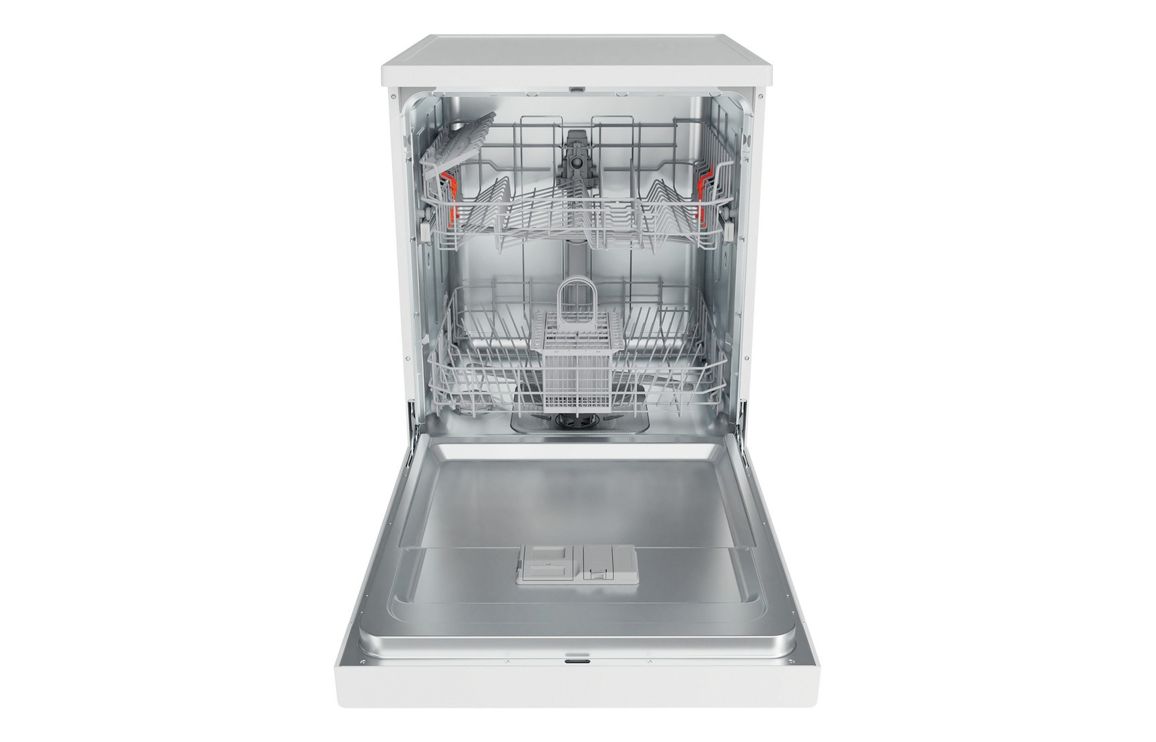 - A Free Standing Hotpoint Standard Dishwasher in White.