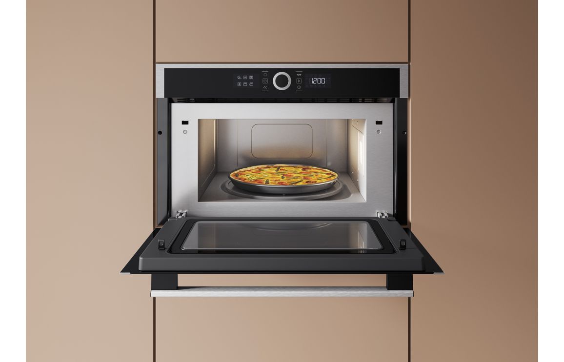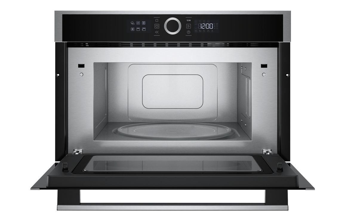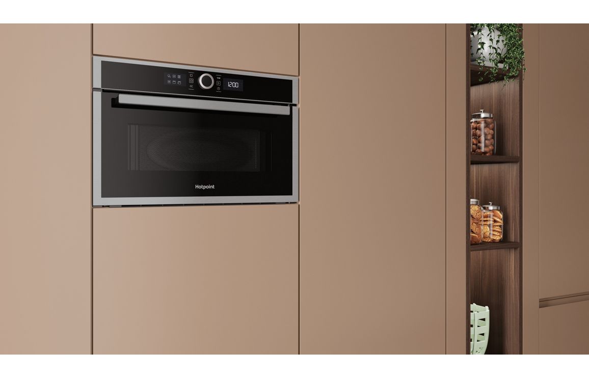 Built In Stainless Steel Hotpoint Microwave & Grill • Power: 1000 Watts • Dimensions: H 385 x W 595 x D 468mm
