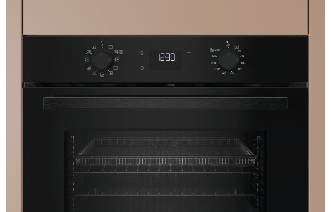 A built in Hotpoint single electric oven in black • 71 litre capacity • Dimensions: H 595 x W 595 x D 551mm