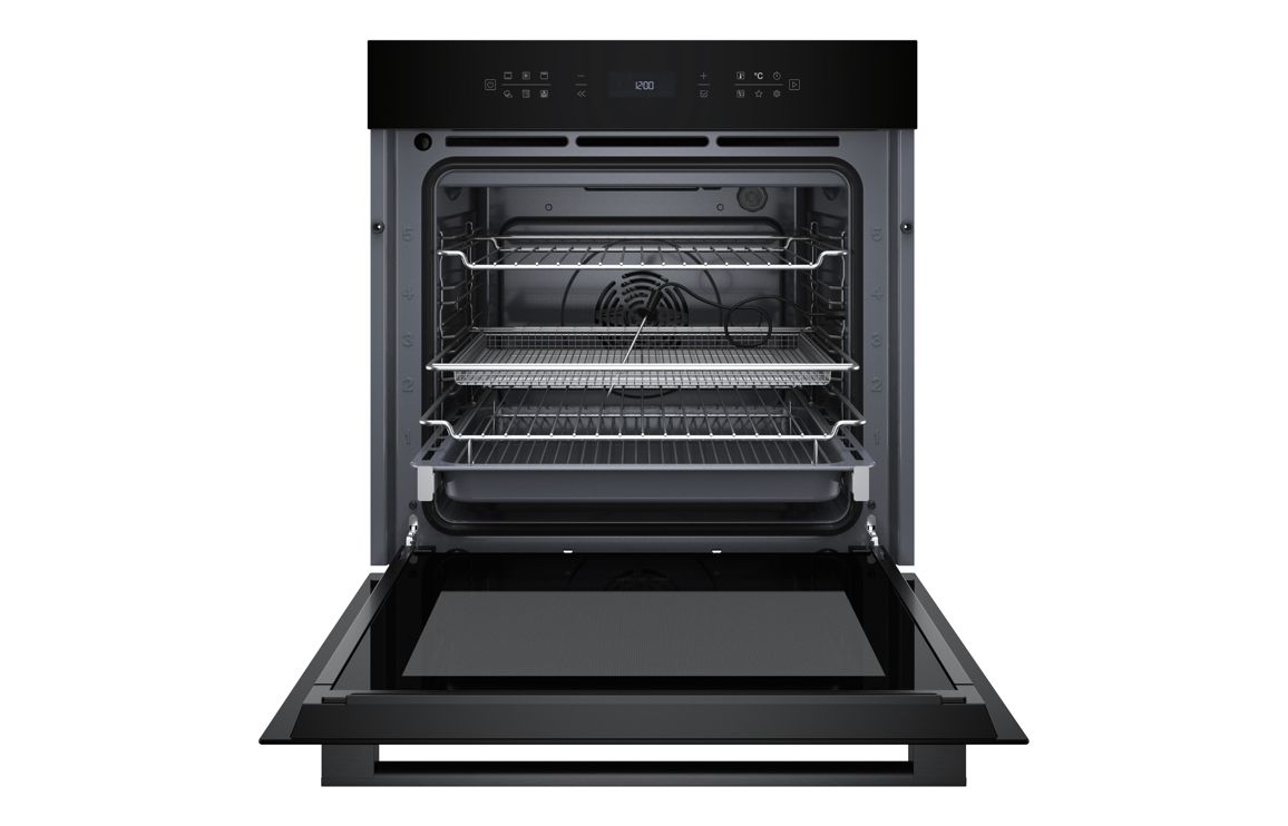 A built in Hotpoint single electric oven in black • 73 litre capacity • Dimensions: H 597 x W 595 x D 564mm