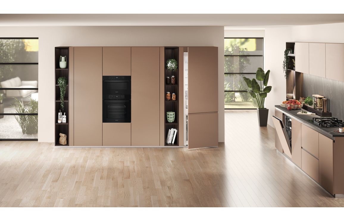 Built In Black Hotpoint Microwave & Grill • Power: 1000 Watts • Dimensions: H 385 x W 595 x D 468mm