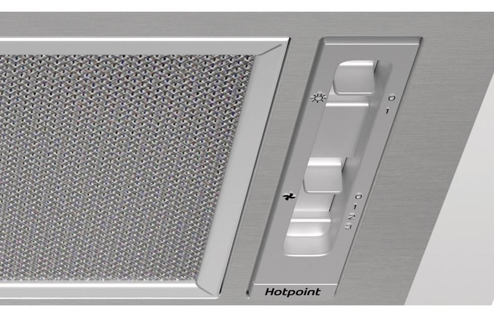 A Hotpoint Canopy Hood in Grey • Maximum extraction: 224 m³/h • Dimensions: H 177 x W 534 x D 299mm