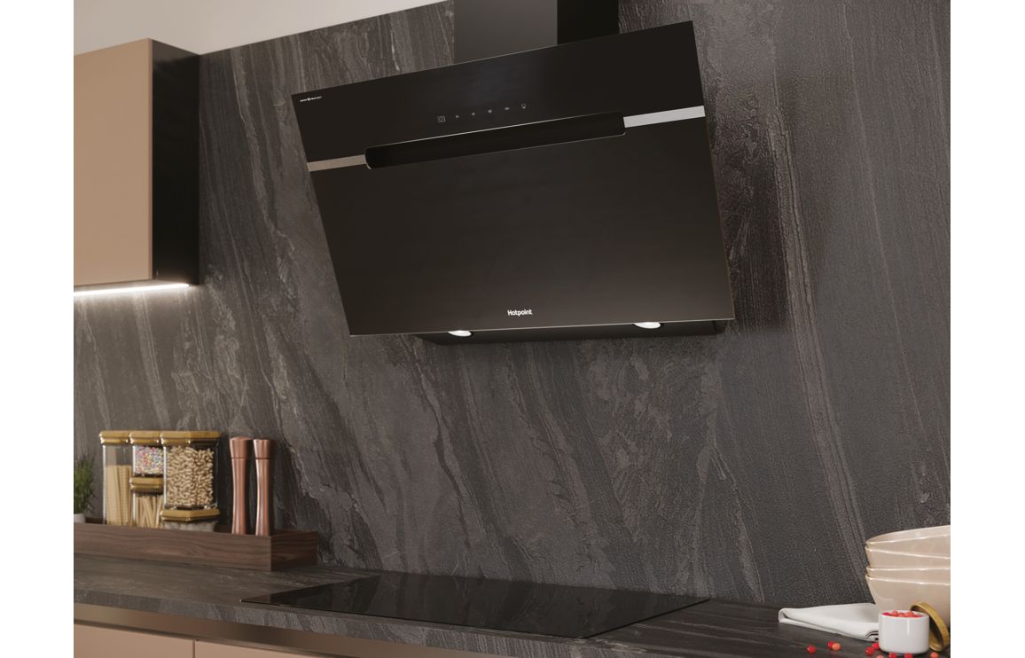 Hotpoint PHVS 91F LT DP K 90cm Angled Chimney Hood – Black