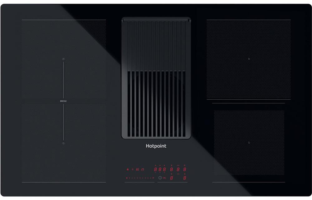 A Built In Hotpoint Venting Induction Hob in Black • Number of Cooking Zones – 4 • Dimensions: H 53 x W 830 x D 515mm