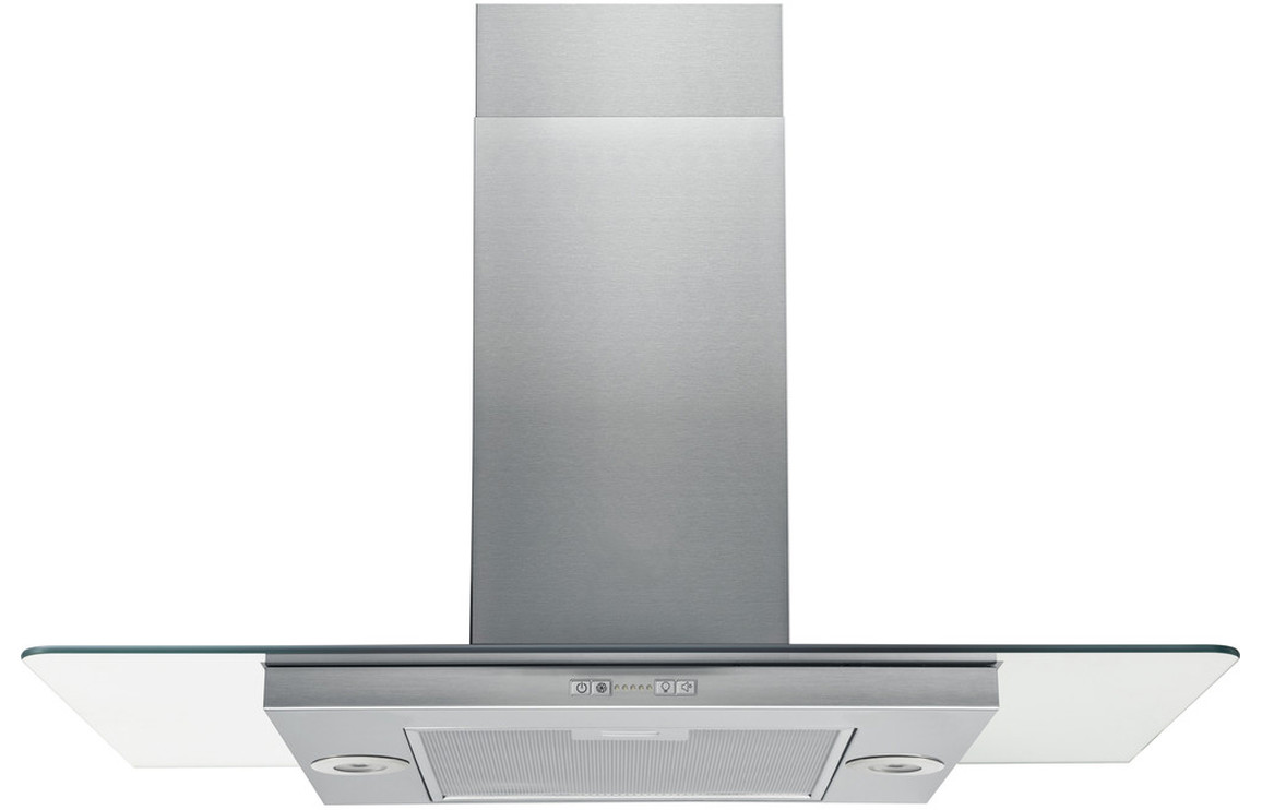 - A Ceiling Fitted Hotpoint Island Hood in Stainless Steel & Glass