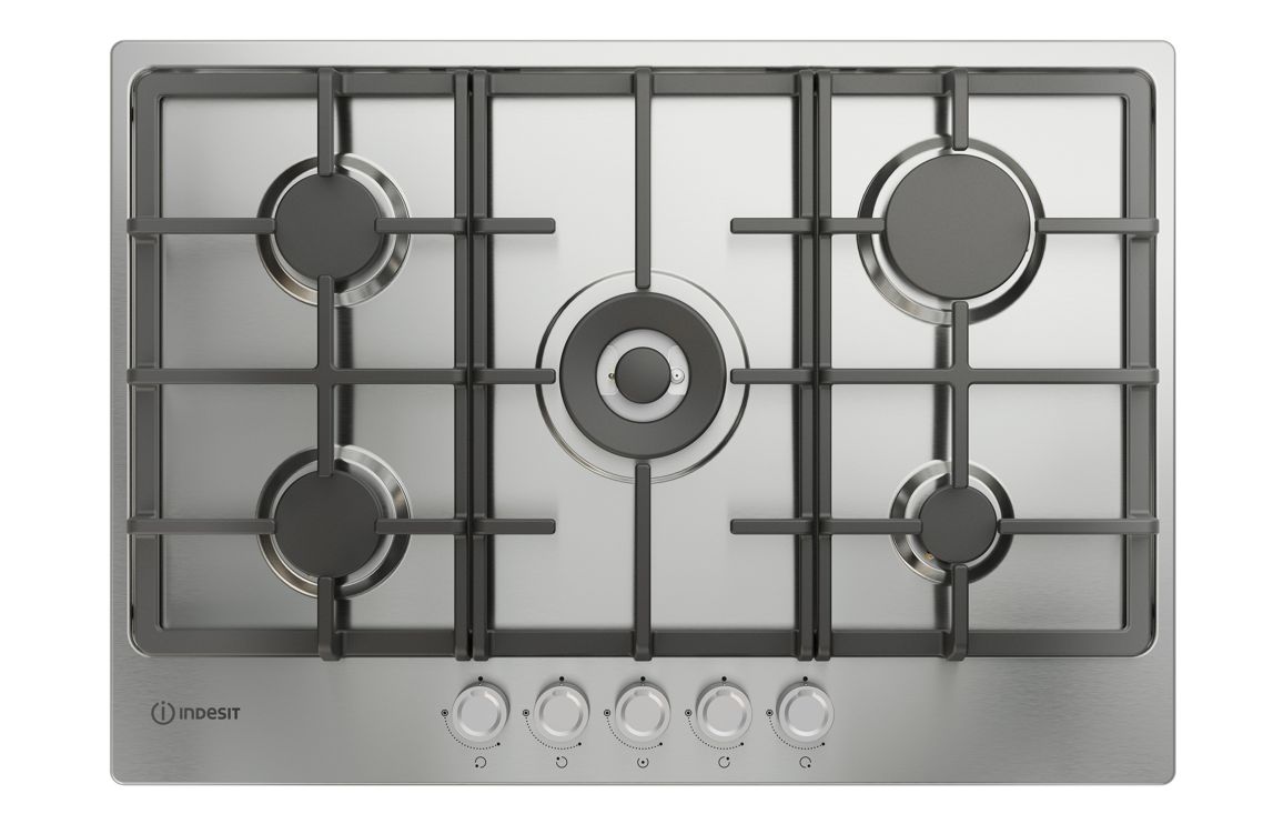 A Built In Indesit Gas Hob in Stainless Steel • Number of Cooking Zones – 5 • Dimensions: H 58 x W 730 x D 510mm