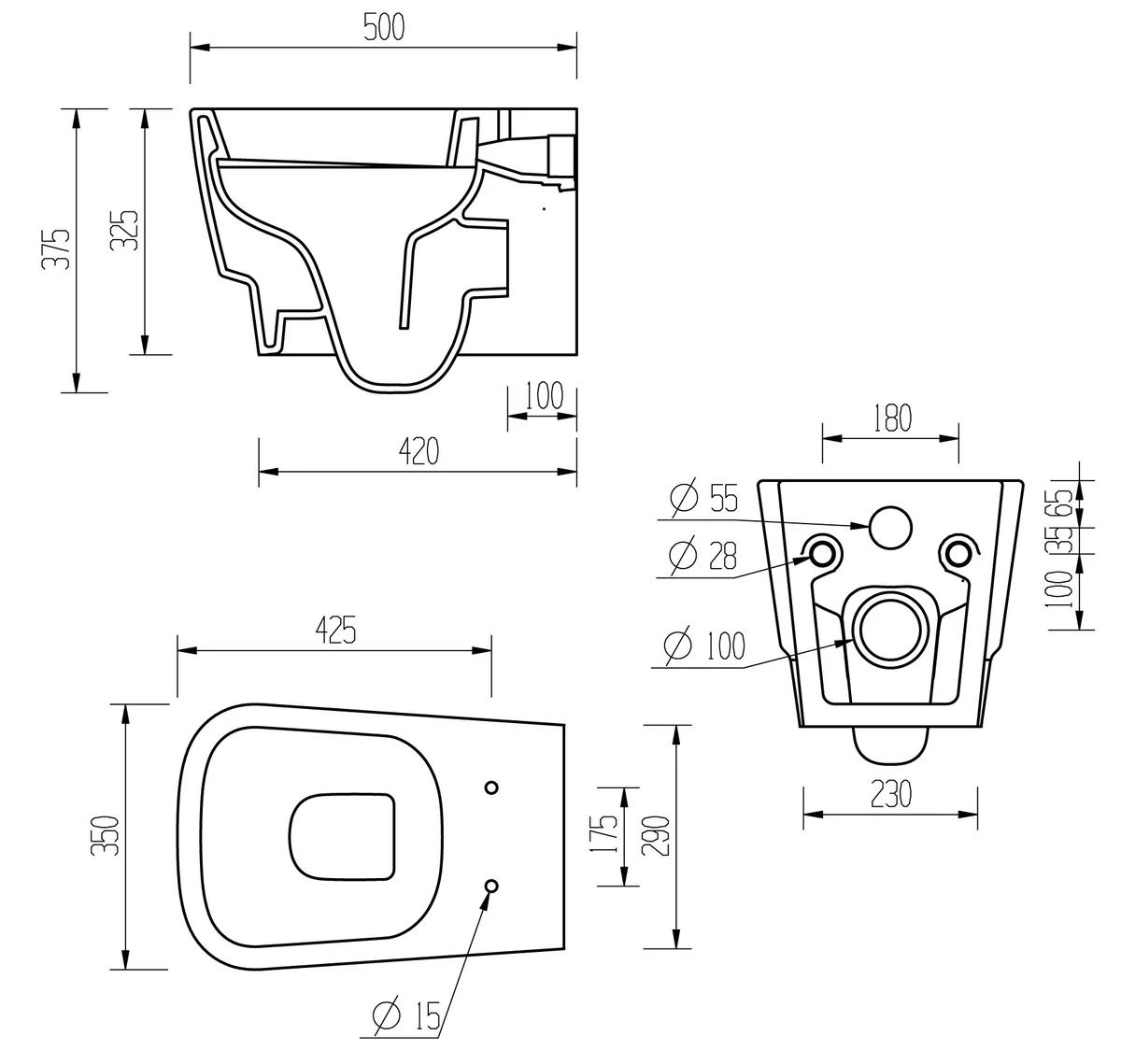 Includes Wall Hung Pan & Seat only • Distance from soil pipe spigot to wall: 85mm • Dimensions: H 370 x W 350 x D 440mm