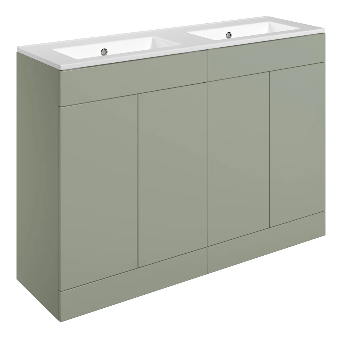 Novello Xalvex 1210mm Floor Standing 4 Door Basin Unit & 0TH Basin – Matt Olive Green