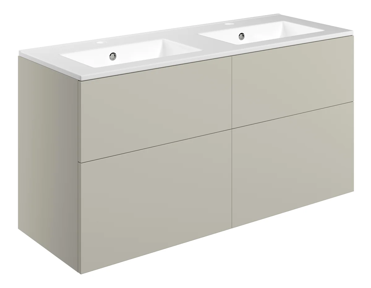 Novello Xalvex 1210mm Wall Hung 4 Drawer Basin Unit & 2TH Basin – Matt Latte