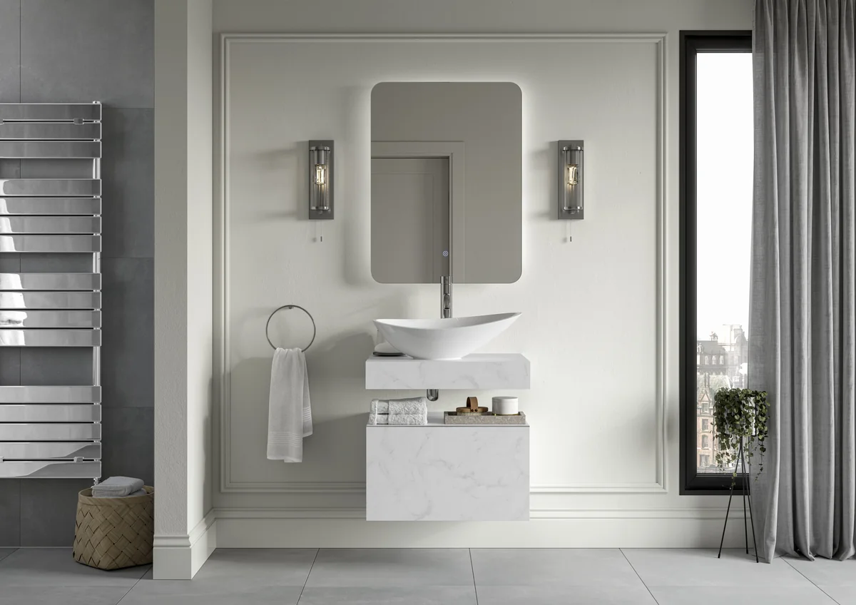 Capturing the trend for natural finishes the Natural range offers a countertop shelf and a drawered storage unit • Please select a complementing washbowl • Dimensions: H 100 x W 600 x D 460mm