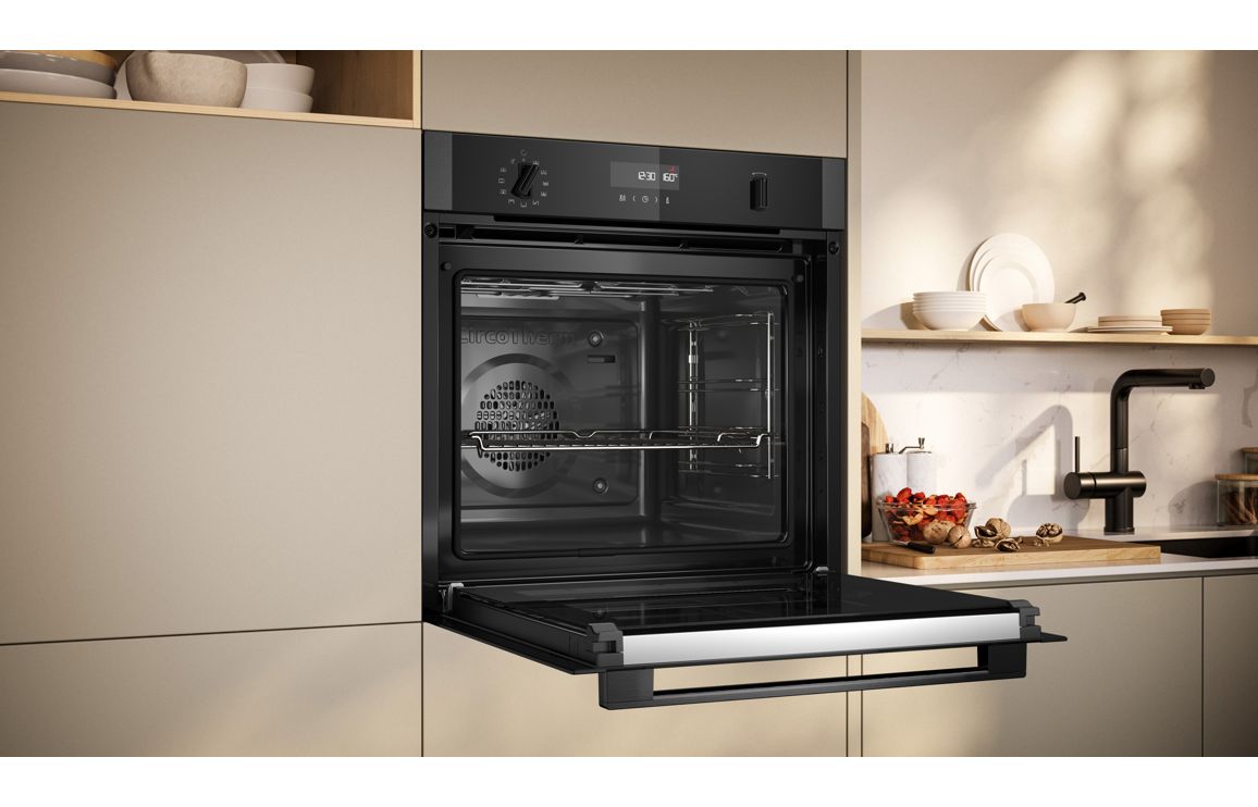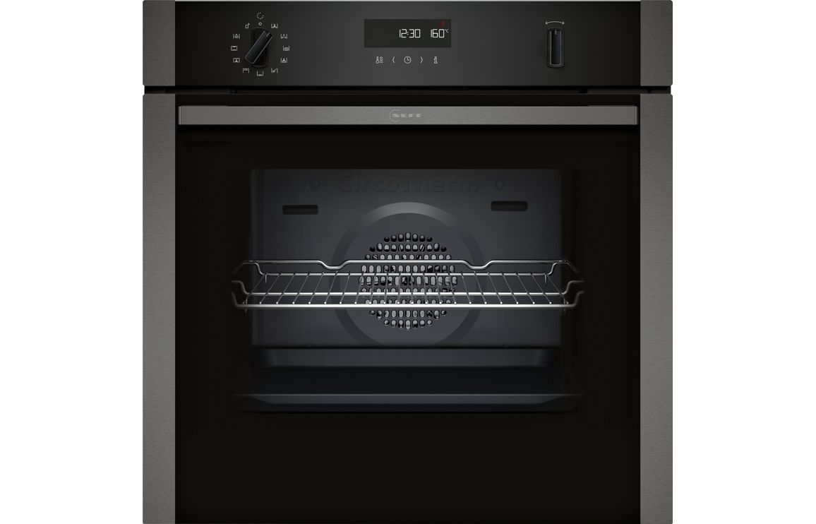A built in Neff single electric oven in graphite grey • 71 litre capacity • Dimensions: H 595 x W 594 x D 548mm