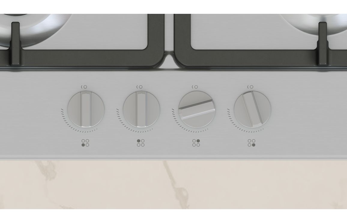 A Built In Neff Gas Hob in Stainless Steel • Number of Cooking Zones – 4 • Dimensions: H 51.1 x W 582 x D 520mm