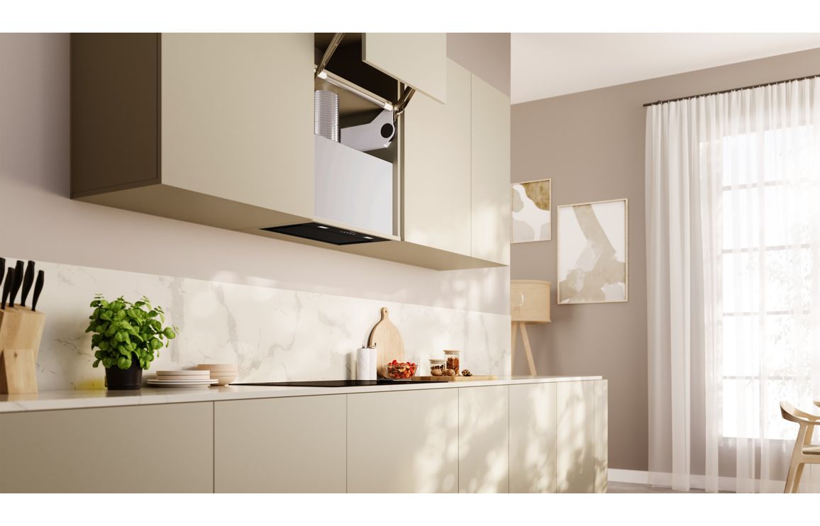 • Hidden Design: Seamlessly integrate your hood in a flush fitted cupboard design.