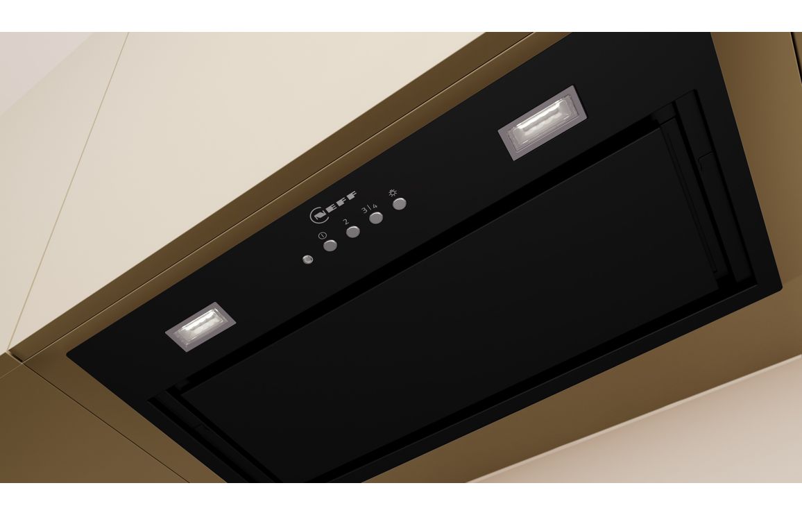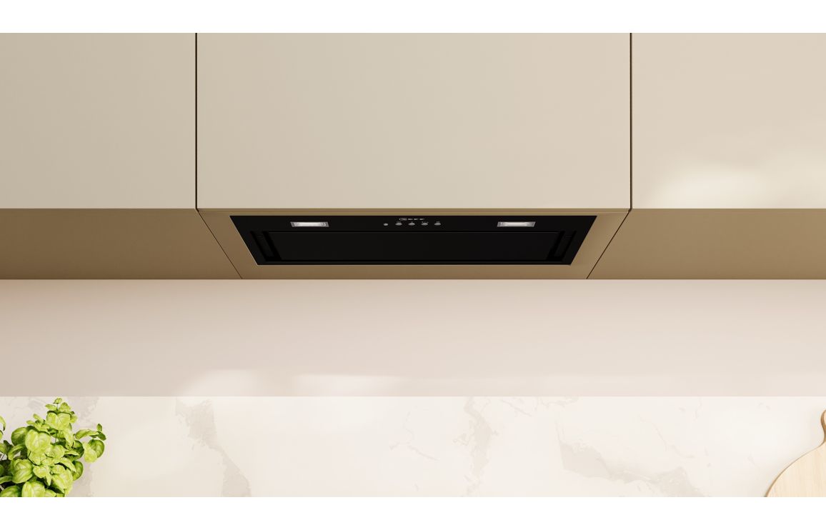 A Cabinet Fitted Neff Canopy Hood in Black • Maximum Extraction: 570 m³/h • Dimensions: H 345 x W 520 x D 282mm