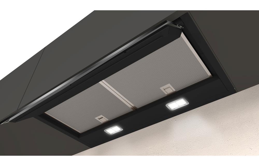 A Cabinet Fitted Neff Integrated Hood in Black • Maximum Extraction: 460 m³/h • Dimensions: H 340 x W 597 x D 298mm