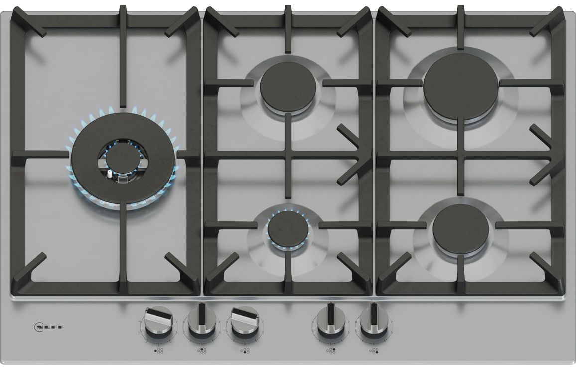A Built In Neff Gas Hob in Stainless Steel • Number of Cooking Zones – 5 • Dimensions: H 53 x W 750 x D 520mm